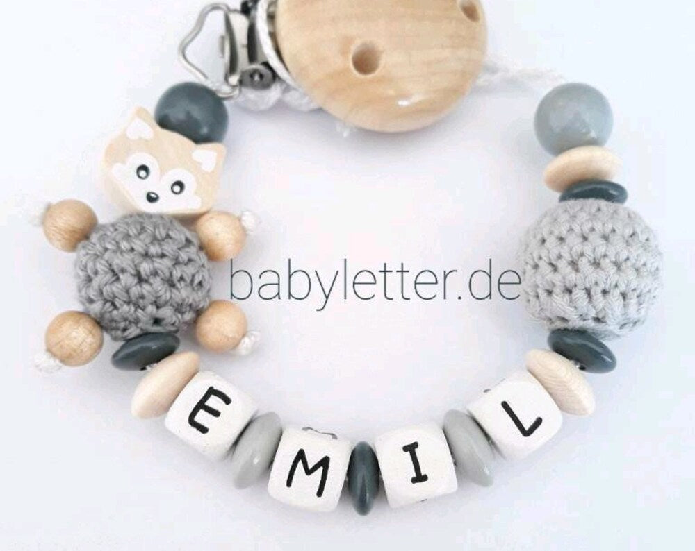 Personalisierte Schnullerkette aus Holz & Häkelperlen | Optional mit Greifling